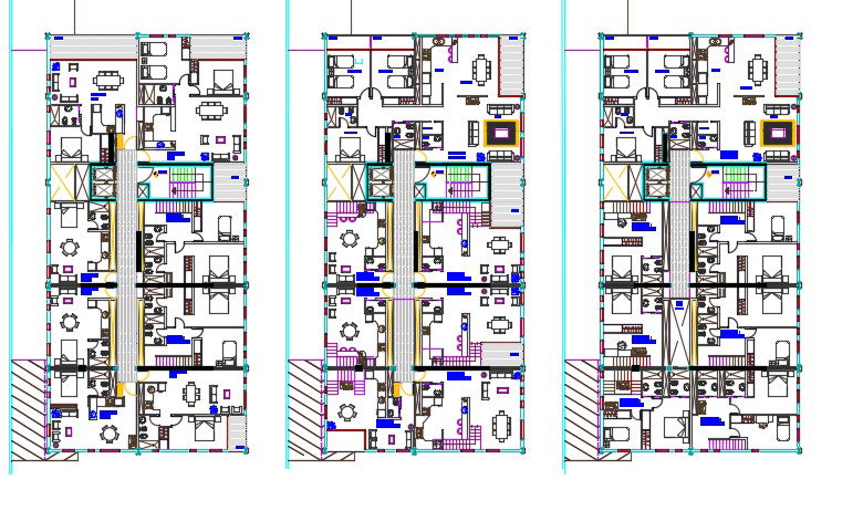 the architecture apartment furniture layout plan design which consist 3 BHK, 2 BHK, 1 BHK and hall kitchen design. download residence apartment with multiple house unit design AutoCAD file.