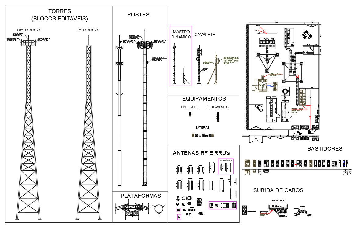 Mobile phone network tower Elevation design is available in this drawing file. This drawing file shows the elevation view of the telecommunication tower and the details of the antenna on the tower. total two-tower elevation available in this drawing each tower having antenna to check the details download the AutoCAD dwg file.