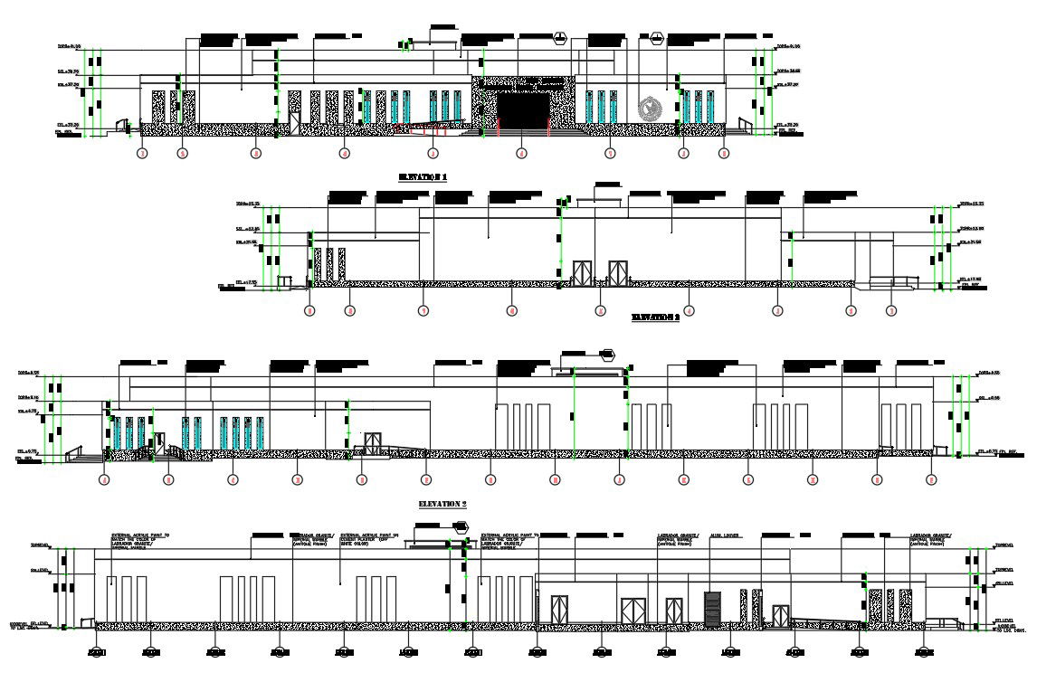 The AutoCAD drawing file shows the details of the elevation design of the office building. A detailed section plan is given in this drawing file. Elevation details are given in this drawing file. The sectional plan is clearly mentioned with dimensions in this drawing file. Download the DWG file.