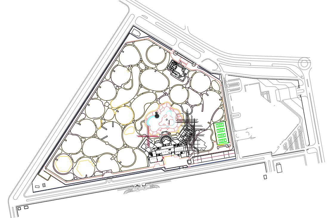 Hotel Landscape Floor plan design Autocad DWG file. Download this AutoCAD drawing file.