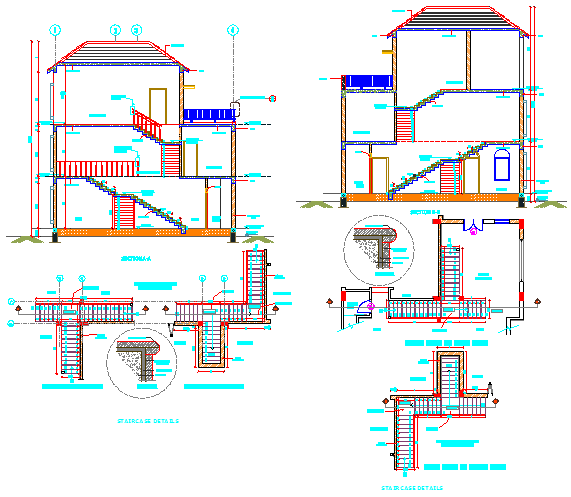 This file is Staircase detail drawing file.In this drawing all detail of staircase like Raiser and treads detail drawing and his section.and first floor to second floor stair elevation section side section etc available in this drawing.