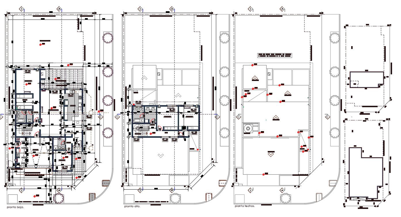 The Villa project ground floor plan and first floor plan with terrace plan design that shows dormitorio, kitchen, hall, dining area, and metal pergola. download villa project layout plan design DWG file and use this drawing for new project CAD presentation.