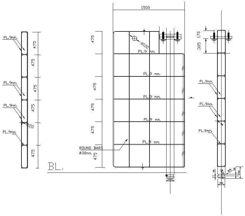 The rudder stock diameter is provide adequate strength and capable of steering the ship at navigable speed. download free rudder section drawing AutoCAD file.