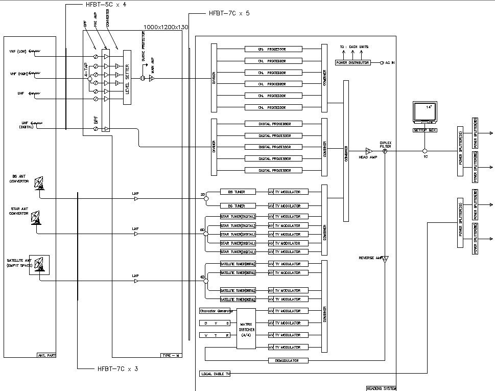 AutoCAD DWG file showing the details of the CATV system block detailed diagram,Download the DWG file.