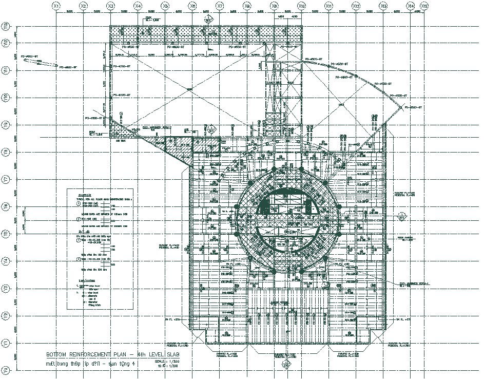 AutoCAD Drawing file showing the details of the 4th level slab bottom reinforcement plan details ,Download the DWG file