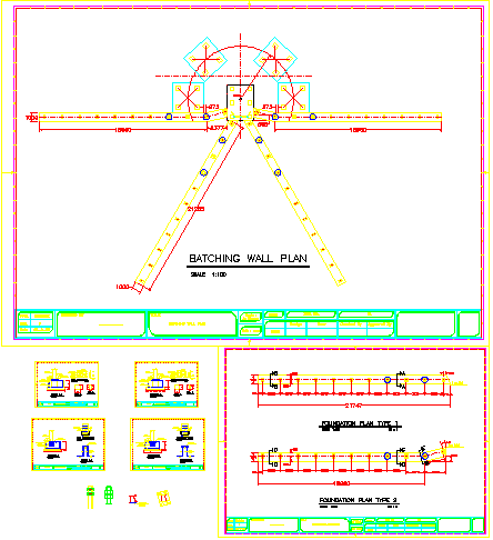 This is a Batching wall plan. In this drawing plan,Foundation plan type-1 or 2,BAse plate plan section elevation joinery parts section available in this file.