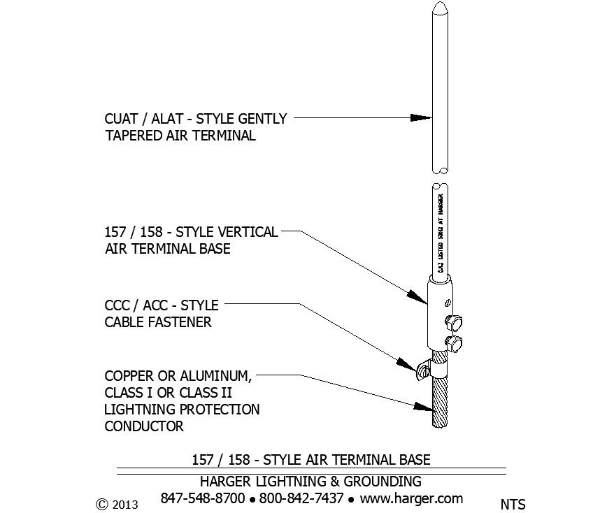 AutoCAD Drawing DWG file showing the details style Air terminal base detailed diagram,cuat/alat -style gently air terminal,157/158/-style vertical air terminal base, ccc/Acc- Style cable fastener, copper or Aluminium ,Class-I or class-II Lightning protection conductor are the parts of the base is given in this drawing file, to get those details to download the AutoCAD dwg file. Thanks for downloading the AutoCAD DWG 2d files from our website.