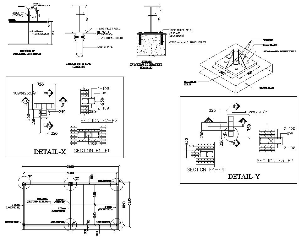 AutoCAD DWG files having the details of the section of the beam, and connection details. This drawing file shows a section of the beam and connection details. telephone tower location is on the house, Sectional details of the tower foundation and long section details are clearly mentioned in this drawing .check the details and download the AutoCAD dwg file.