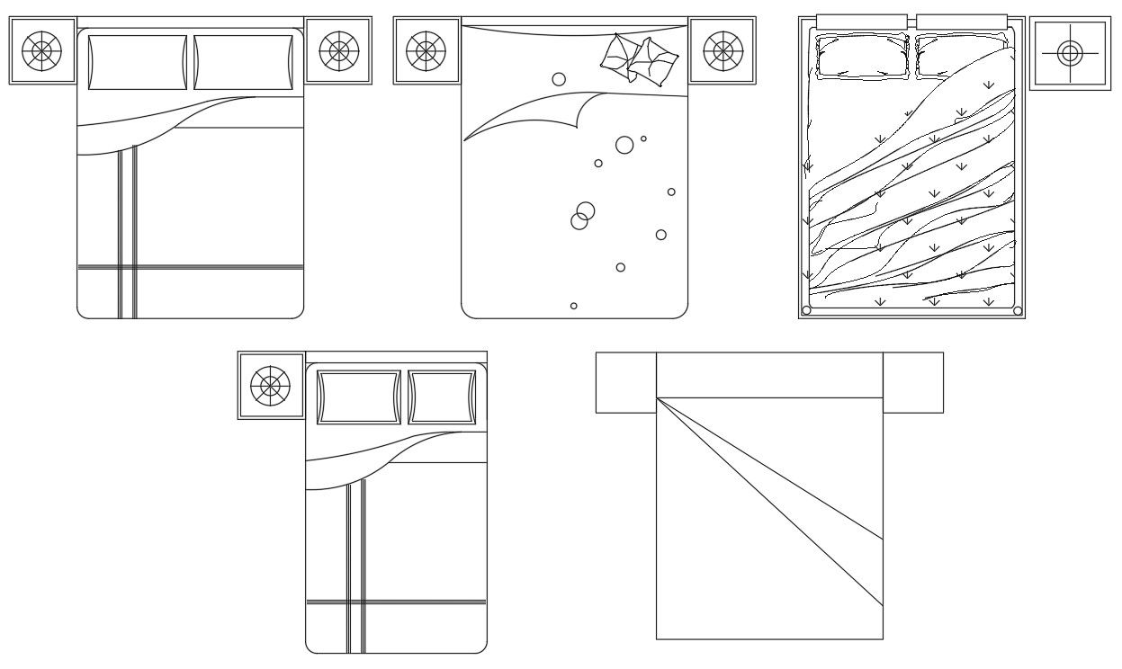 AutoCAD Bedroom Furniture Blocks of Double Bed in DWG File