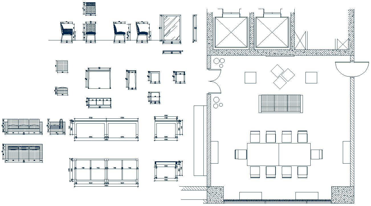 Furniture blocks are available in this DWG AutoCAD Drawing file, Many types of blocks available like chairs, tables, sofa, office tables different types of Dining tables are available. Download the AutoCAD DWG file to get these blocks. Thanks for Downloading AutoCAD DWG files from our website.
