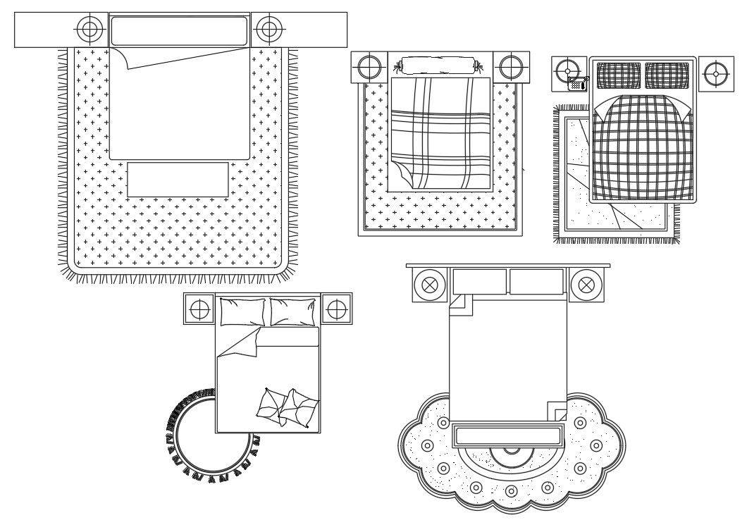 The modern finishing wooden stylish floating double bed furniture CAD blocks drawing. also has different shades and the various designs of the parts complement design. download double bed with floor carpet design in five different option AutoCAD file.