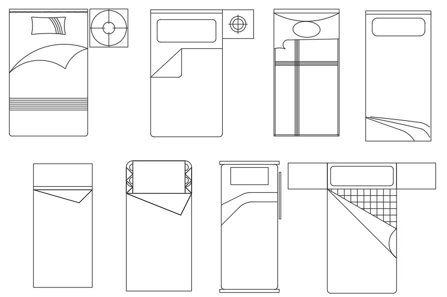 2d CAD drawing of single bed top view plan that shows single bed, cushion, bed sheet and mattress. download single bed furniture design CAD blocks DWG file.