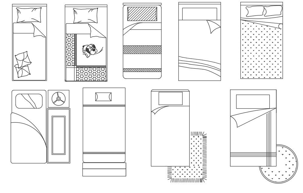 Single Bed Furniture CAD Blocks DWG File for AutoCAD use
