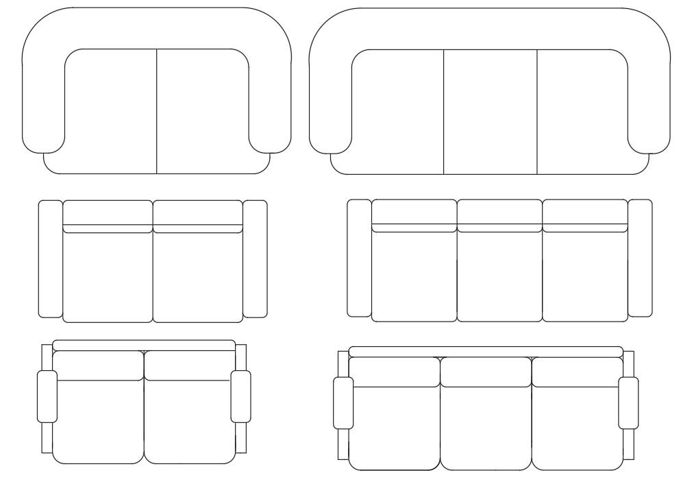 2d CAD drawing of sofa set furniture CAD blocks drawing that shows 2 seater and 3 seater which is use in living room. Although a couch is used primarily for seating. download free furniture sofa set CAD blocks drawing DWG file.