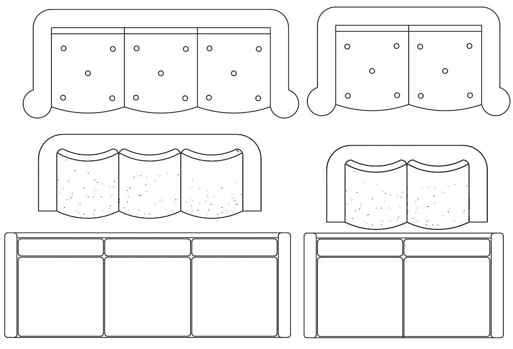 Find here 3 different sofa set design which consist 2 seater and 3 seater with sponge back rest. download free AutoCAD furniture sofa set CAD blocks design DWG file.