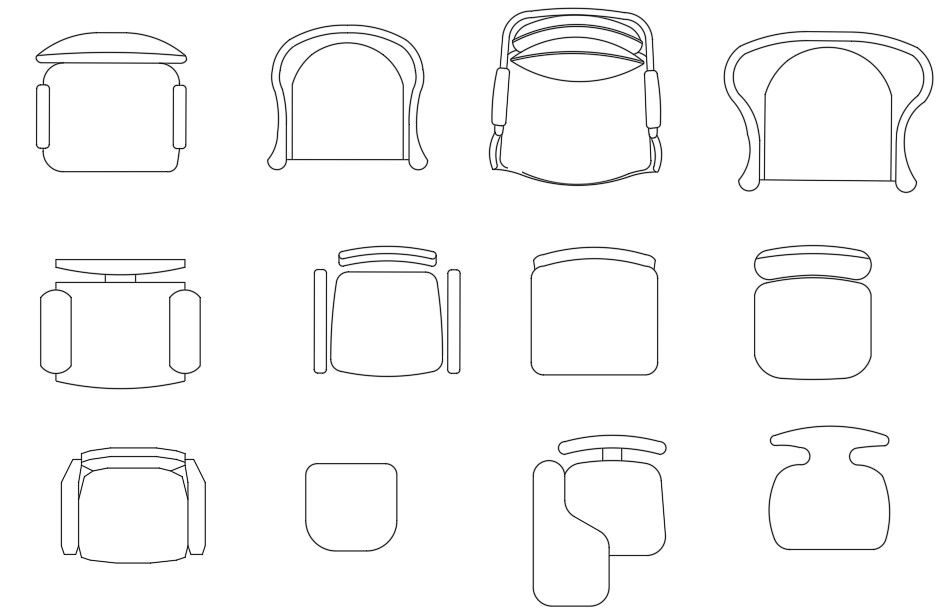 2d CAD drawing of different arm chair design such as a use in office, institute, home and waiting area. download multiple different chair CAD blocks design DWG file.