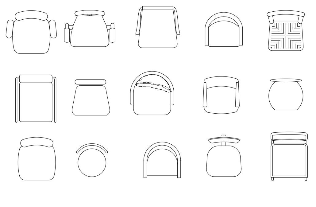 AutoCAD Chair CAD blocks top view plan drawing which consist different types of chair which is made of wood, metal, and synthetic materials. download free download furniture chair CAD blocks DWG file.