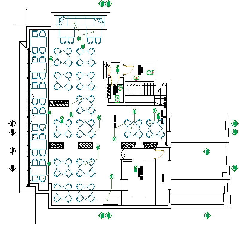 AutoCAD Drawing files having the Furniture details of the First-floor Restaurant building.Download the AutoCAD 2D DWG file.
