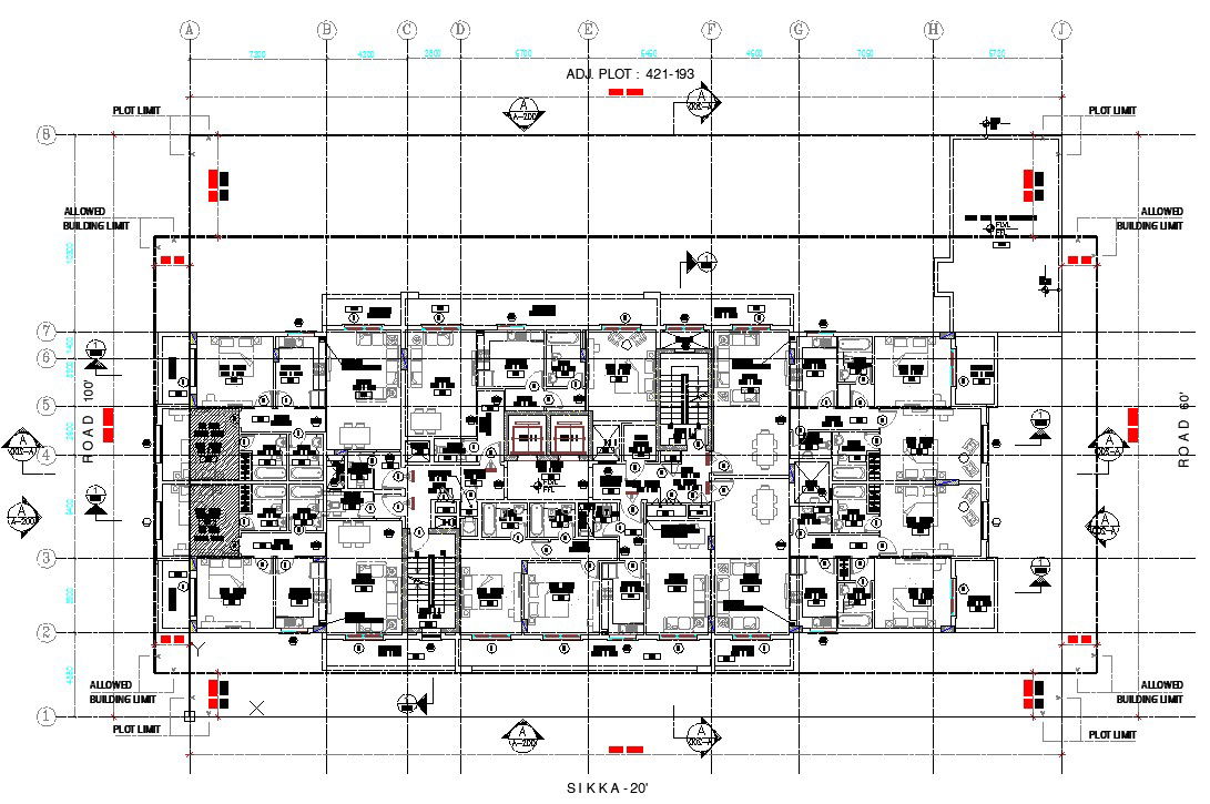 AutoCAD Drawing files show the Furniture layout with section and elevation of the building.Download the AutoCAD 2D DWG file.
