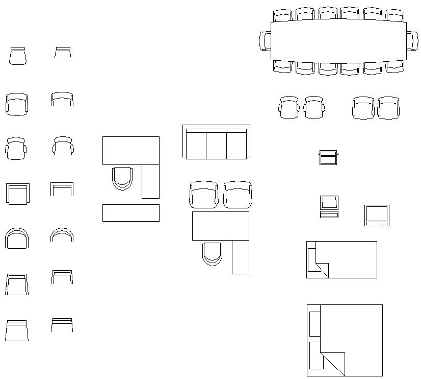 Cad 2D drawing shows assorted furniture Blocks, Download the DWG file to get these blocks.