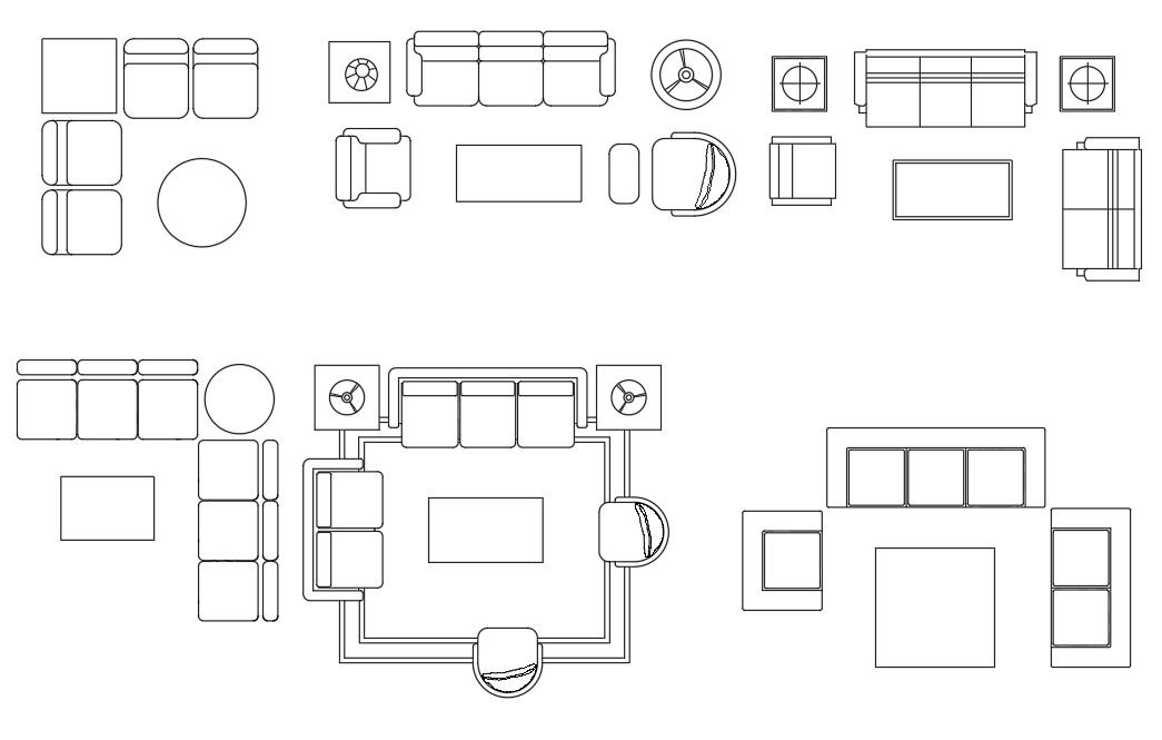 2d CAD drawing of sofa set furniture set up CAD blocks drawing for living room and drawing room top view plan also has center table and corner table. download free DWG file of living room blocks design.