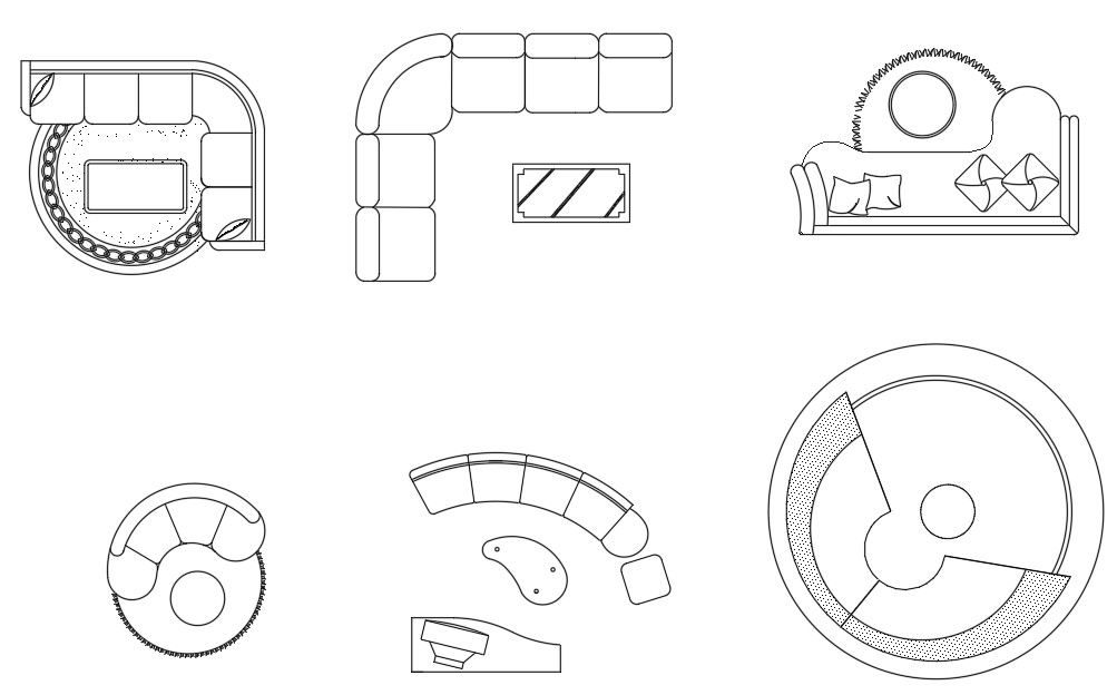 Free L-Shaped and Half Circle Sofa Set CAD Blocks DWG file