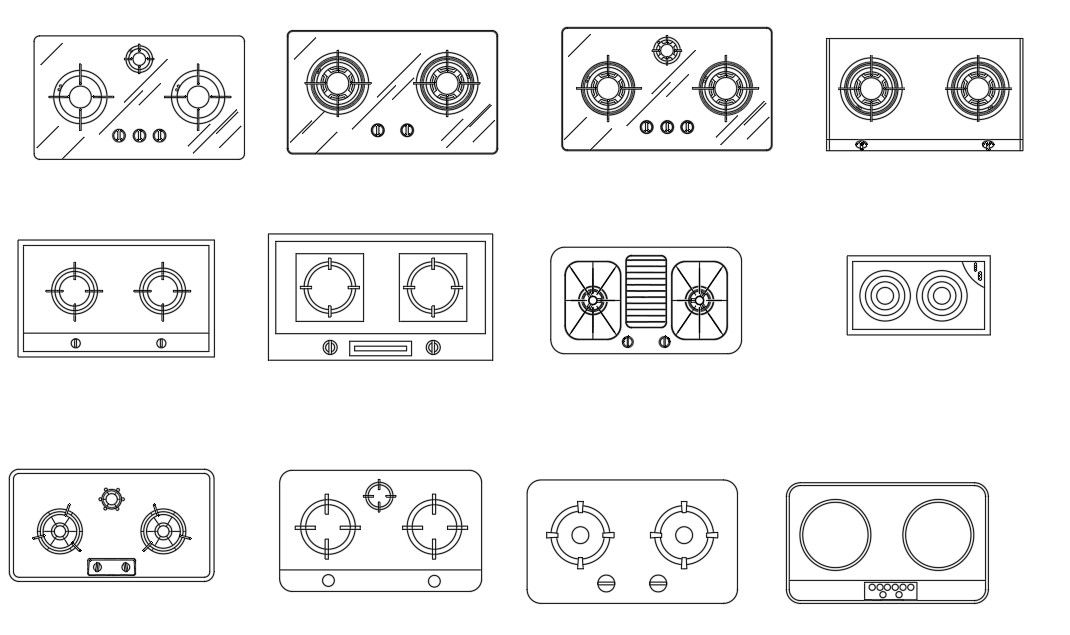 Free Download 2 and 3 burner gas stove CAD blocks design that has different types of model and size. Kitchen stove also called gas stove for the purpose of cooking food.