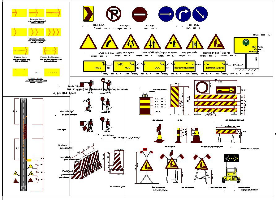 Sequential Arrow, Flashing Double Arrow, Flashing Caution, Construction symbol detail