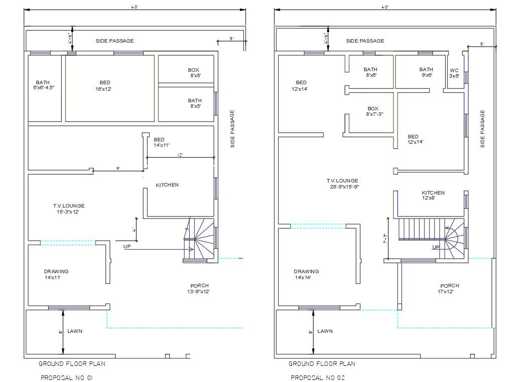 2D DWG Drawing file of 40'X60'Double bedroom G+1 House plan . In this Plan the Ground floor having a master bedroom with an attached toilet, Kid's bedroom with an attached toilet, patio, Drawing room, Kitchen, Dining, TV Lounge, lobby, porch, and Lawn are available. On the first floor, rooms are also similar to the ground floor. The staircase is available inside the house. Download the AutoCAD Drawing file.
