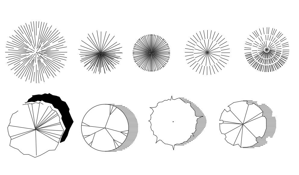 2d CAD drawing of small plant with shadow top view plan that has different design which is ready to use for landscape garden for CAD presentation. download free DWG file of plant blocks DWG file.