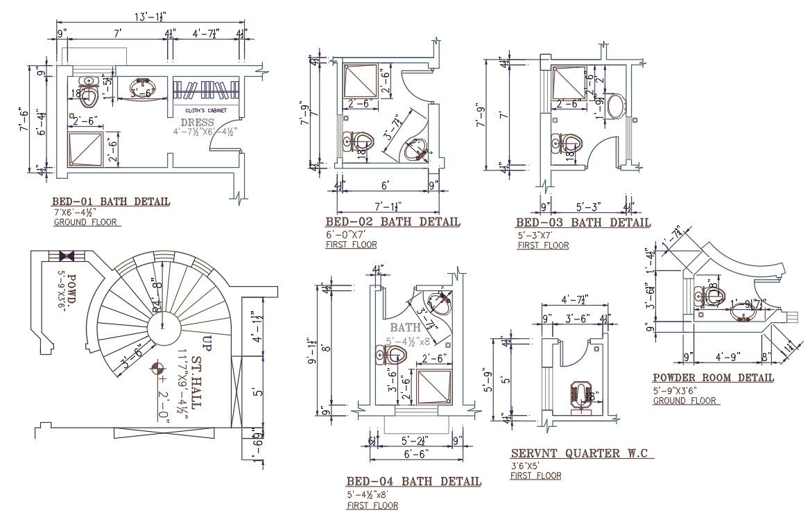 AutoCAD DWG file having the section details of the Toilet,download the AutoCAD DWG file.