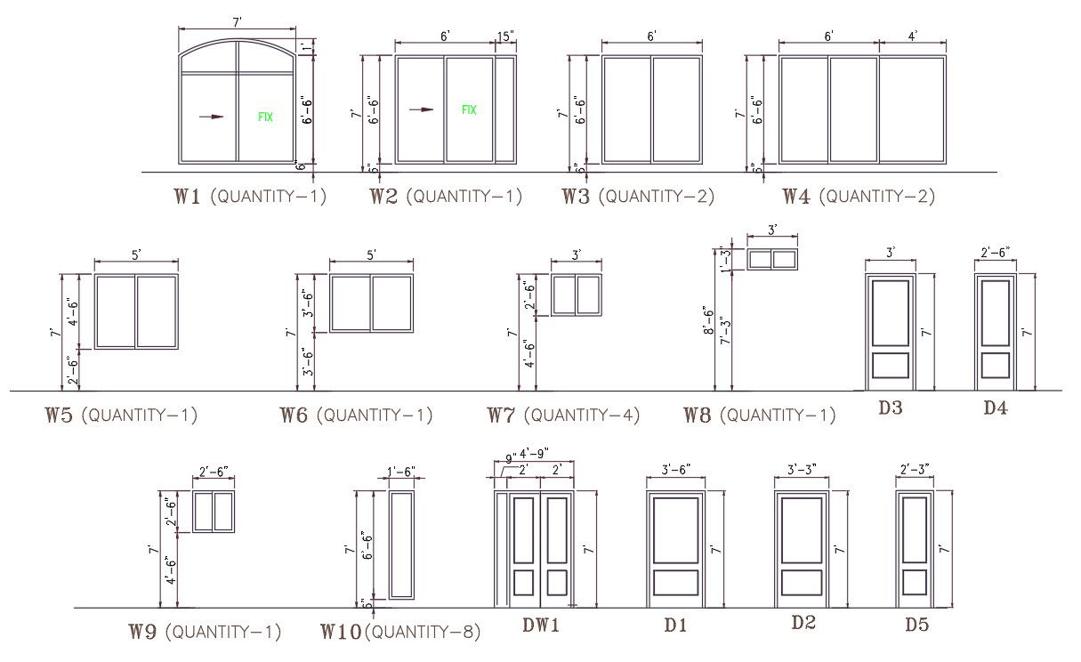 Autocad DWG file Showing the Details of the sectional details of doors and windows. The dimensional details of a variety of doors and windows are given in this drawing file. Top Arch window, sliding window, double frame , terrible frame window, and wooden frame doors are available in this drawing. Download the AutoCAD DWG file.