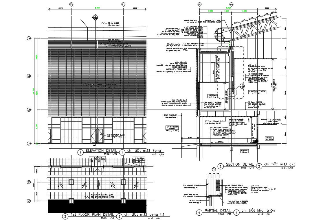 2D CAD Drawing file shows the first-floor plan, Section and elevation details of the industrial building. Download the AutoCAD DWG file.