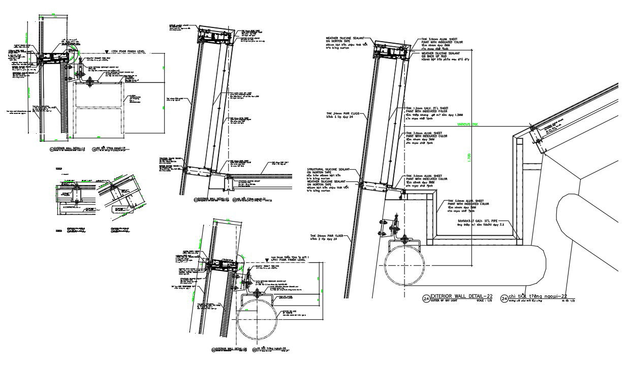 2D Drawing file shows the Section details of the Exterior wall, In the sectional plan, Download the AutoCAD DWG file.