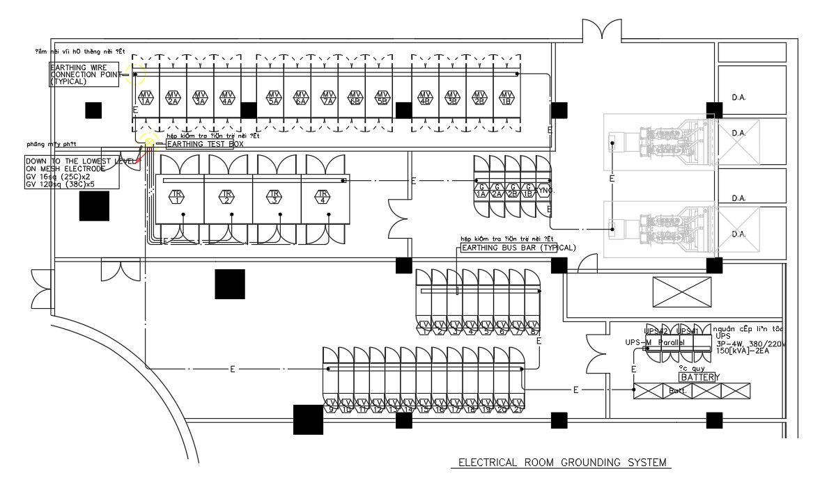 2D AutoCAD drawing file having the section details of the electrical room grounding system.Download the AutoCAD drawing file.