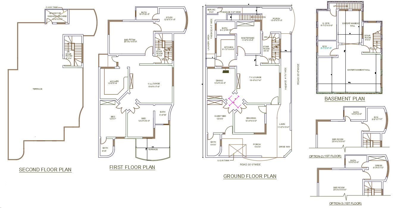 2D AutoCAD Drawing file of 40'X70' 2BHK G+1 House plan. Download the AutoCAD Drawing file.
