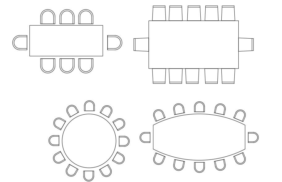 Four Dining Table Design CAD Blocks DWG Drawing File