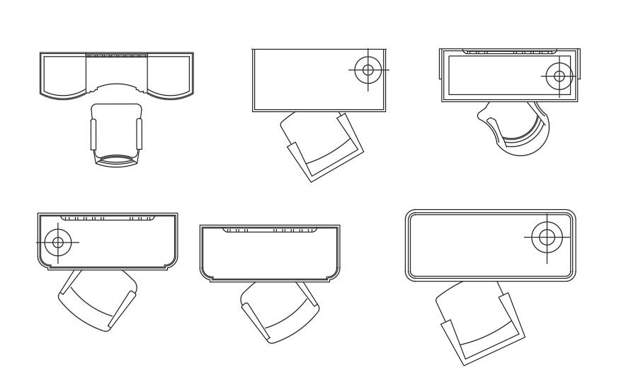 2d CAD blocks Drawing DWG file shows the details of the table and chair top view plan that shows 6 different design which use for work desk and study table. Download free furniture CAD blocks table and chair DWG file.