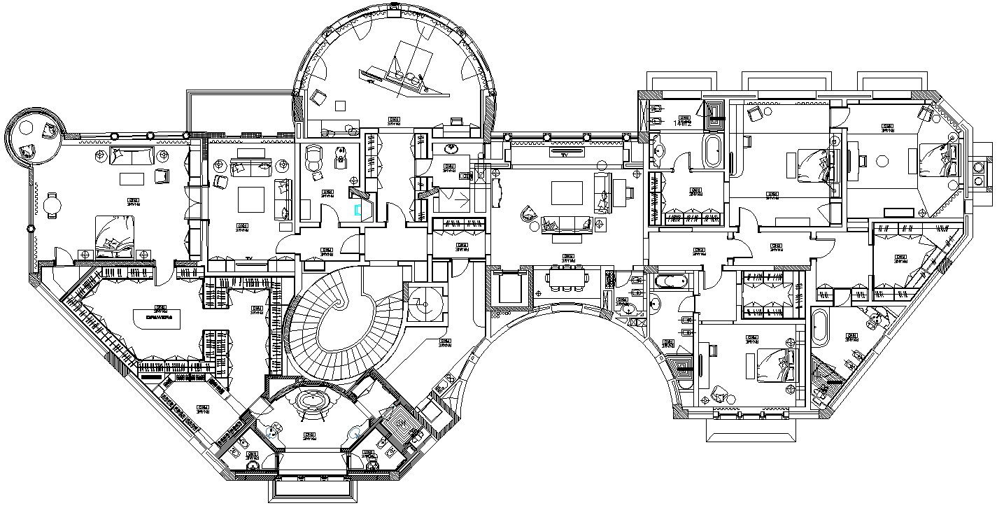 Autocad DWG fie of single-story 4BHK Luxury Villa Ground floor with Furniture plan .In this furniture house plans Master bedroom with the attached toilet, Children's bedroom with the attached toilet, Guest bedroom with the attached toilet, another bedroom with the attached toilet, lounge, Lawn, common toilet, porch, Drawing room, Kitchen is available. bed, dining table, stove, fridge, sofa are the furniture blocks are available. The Staircase is available inside of the house. Download Autocad DWG file.