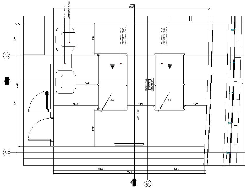 AutoCAD 2d Drawing files show the Billiard table and furniture block Drawing.Download the AutoCAD 2D DWG file.