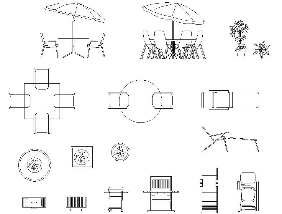 CAD block 2D Drawing files Having the details of outdoor furniture. This file shows the details of the different types of outdoor tables, chairs, sofas, and plants, are available in this diagram. Download the AutoCAD 2D DWG file. Thank you so much for downloading AutoCAD DWG files from our website.