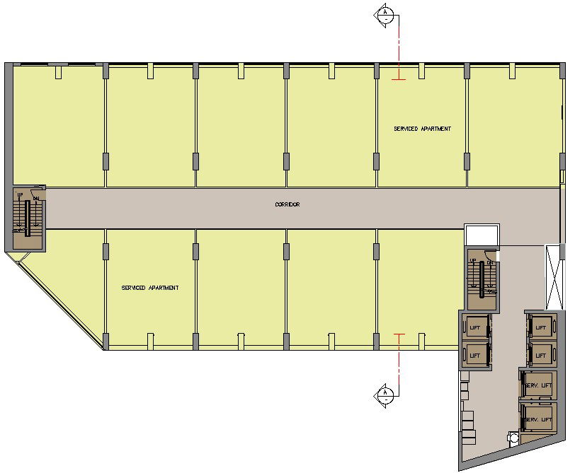 AutoCAD Drawing file shows the typical Floor plan of the service apartment house,Download the Autocad dwg file.