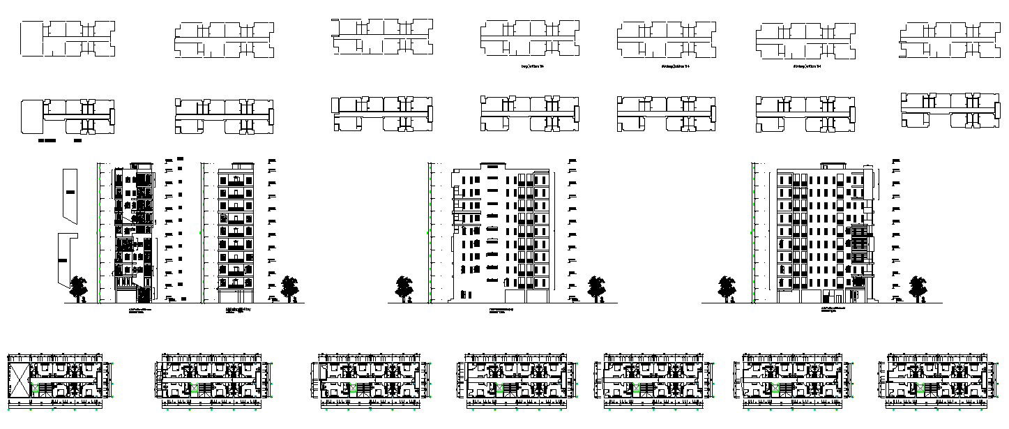 AutoCAD DWG file having the details of the G+8 floor High rise Hotel building floor plan and the Elevation drawing. Download the Autocad DWG file.