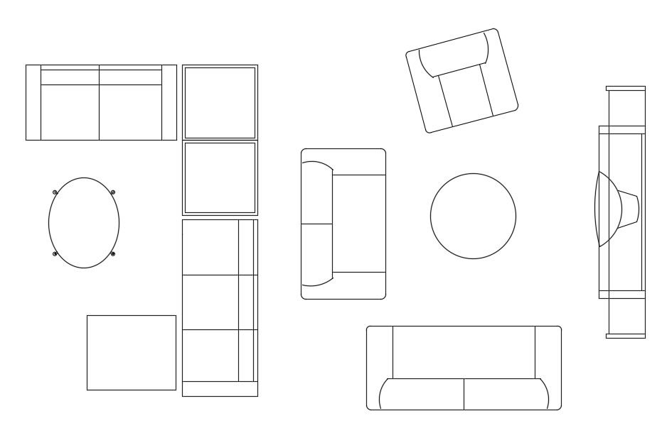 2d CAD drawing of free furniture CAD blocks for living room, drawing and waiting area which consist sofa set and center table. download free 2 different option of living room furniture blocks DWG file.