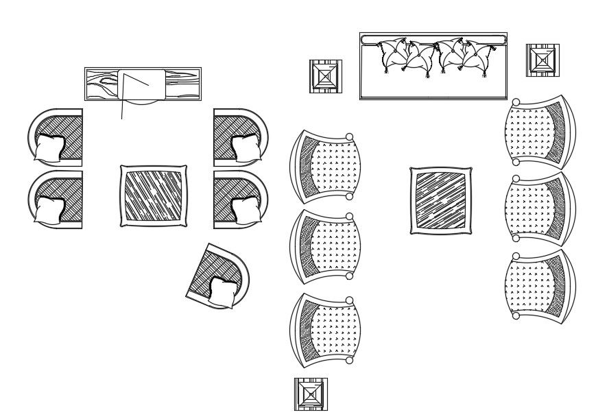 2d CAD drawing of armchair with center table top view blocks drawing that use in living room, drawing and waiting area. download free furniture blocks DWG file.