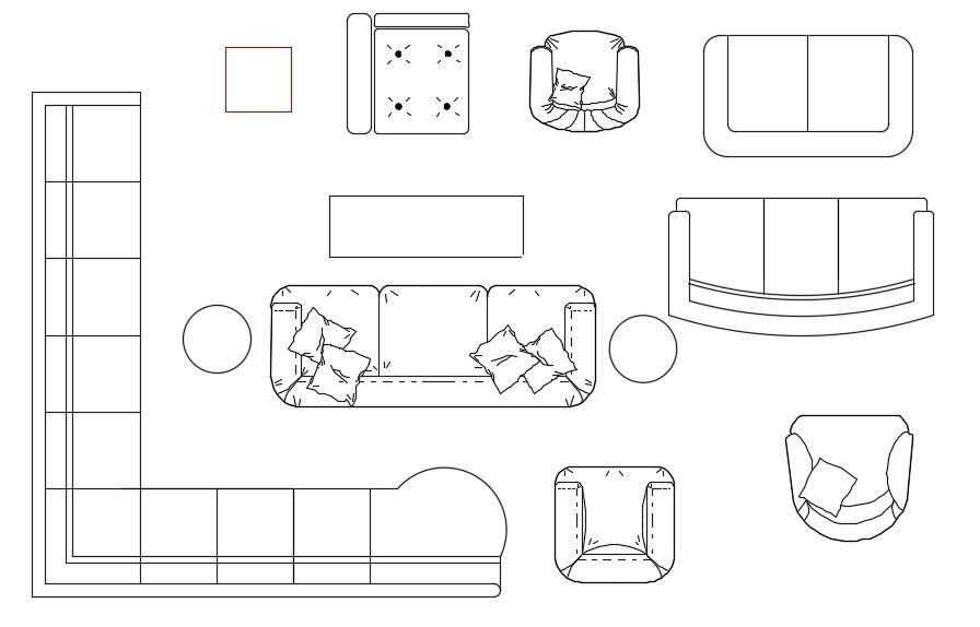 furniture CAD blocks top view drawing have detail of sofa and armchair design which is piece of furniture for seating two, three and more people. download free furniture CAD blocks drawing DWG file