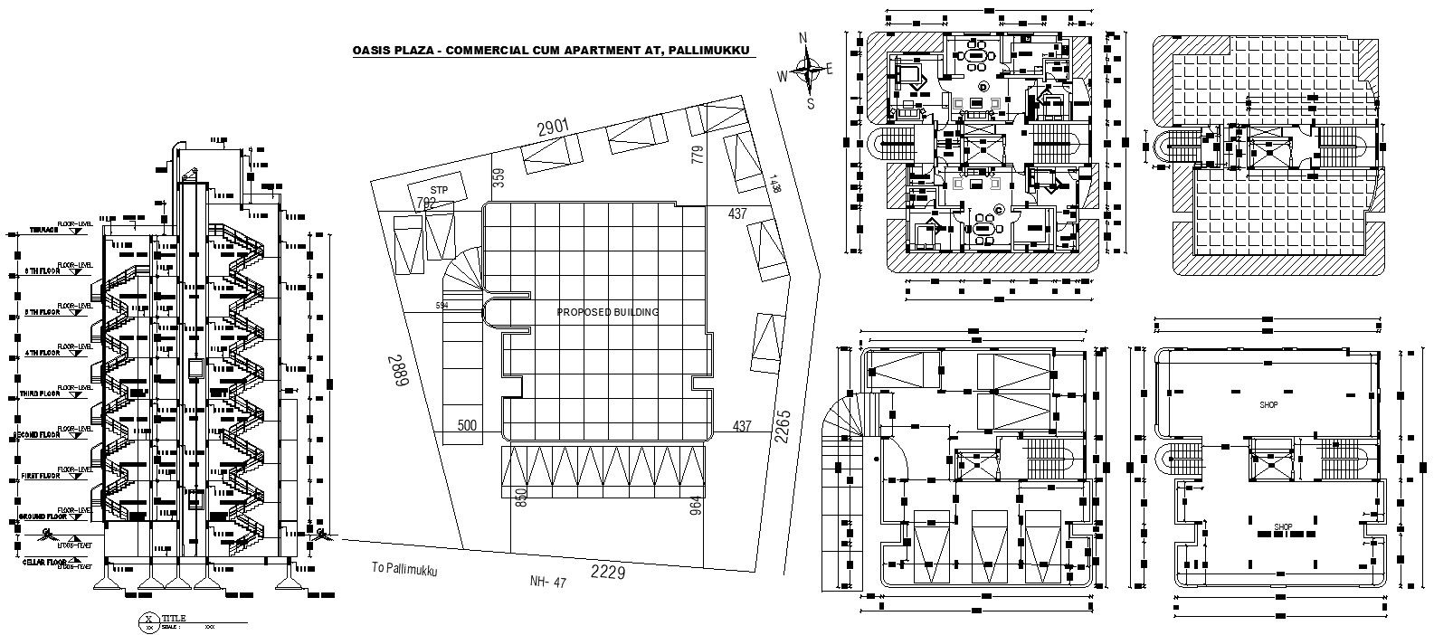AutoCAD DWG Drawing 2D file shows the Details of the G+6 Apartment Building, Download the AutoCAD DWG file.