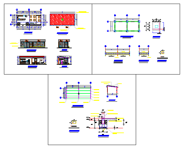 Cafeteria Lay out design, elevation design, section detail, structure detail & Cafeteria lay out include in Kitchen, seating area, etc.