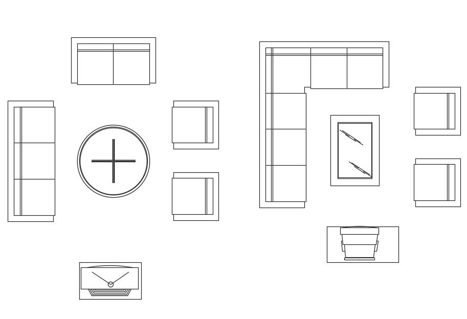 AutoCAD drawing DWG file having detail of living room furniture blocks that shows sofa, center table, and tv unit design in 2 different option available. download free living room furniture blocks DWG file.