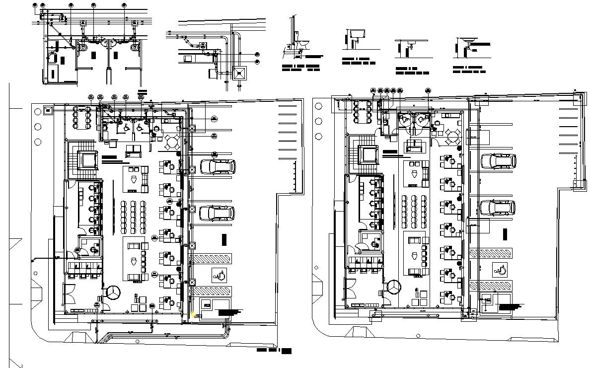 Drawing the AutoCAD file of the office building floor plan and plumbing drawing with the car parking. Download the AutoCAD DWG file.